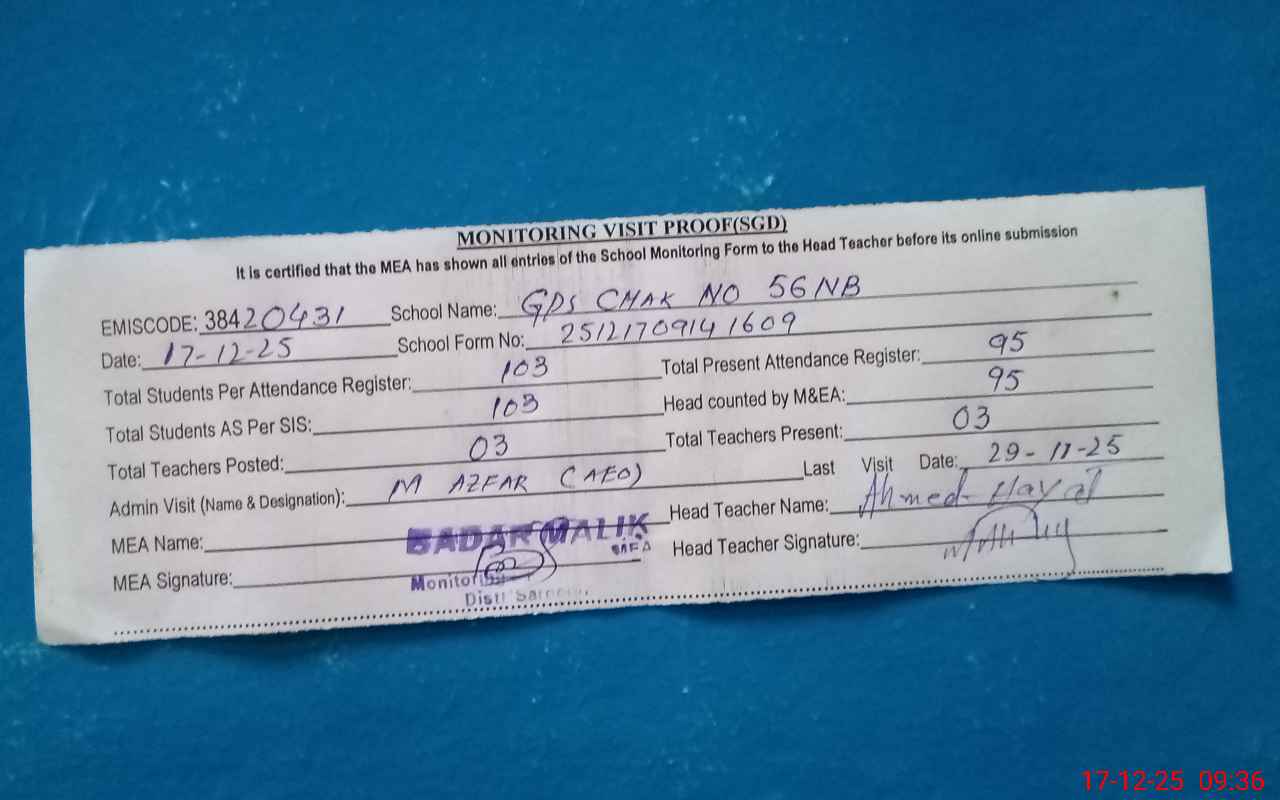 | EMIS Code: 38420431 | Name of School: GPS CHAK NO.56 NB | |||