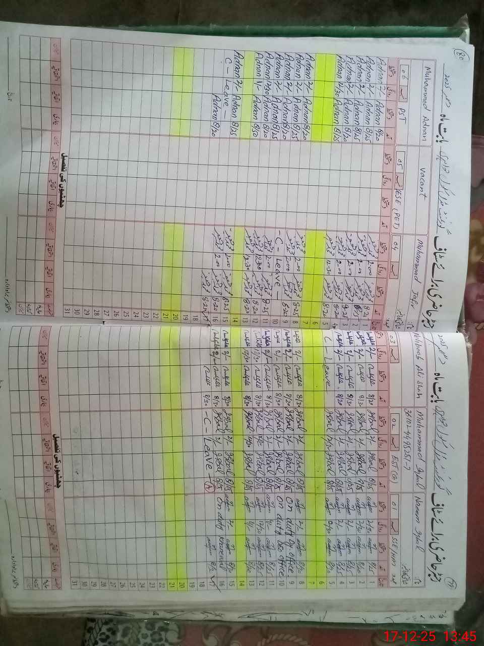 | CNIC | Full Name | Designation | R/C | Absence During Last Calender Month |