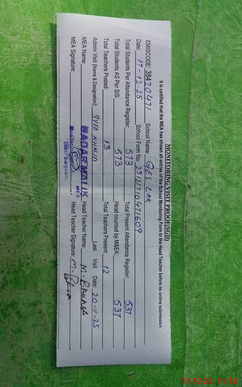 | EMIS Code: 38420471 | Name of School: GES LAK | |||