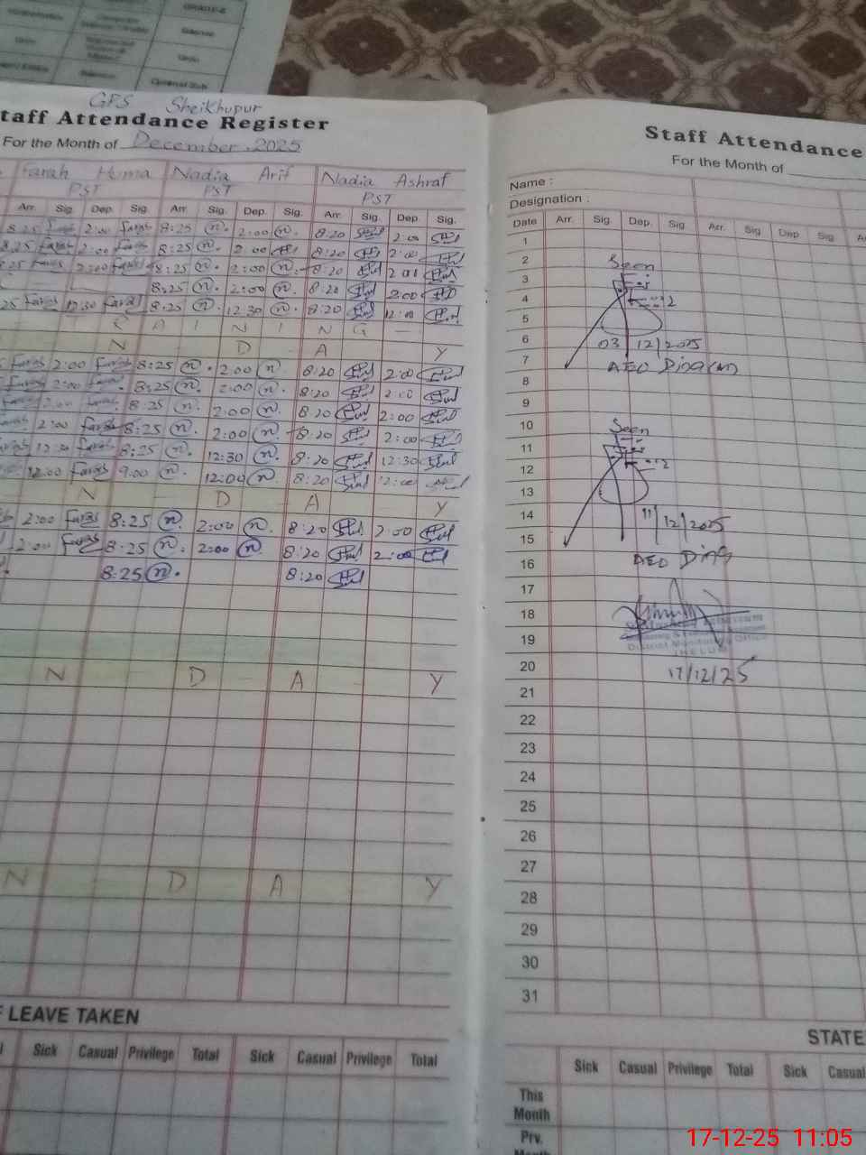 | Remarks (Use Separate Page if Required): HT Zaman Shah PST is on PSER duty | |||||