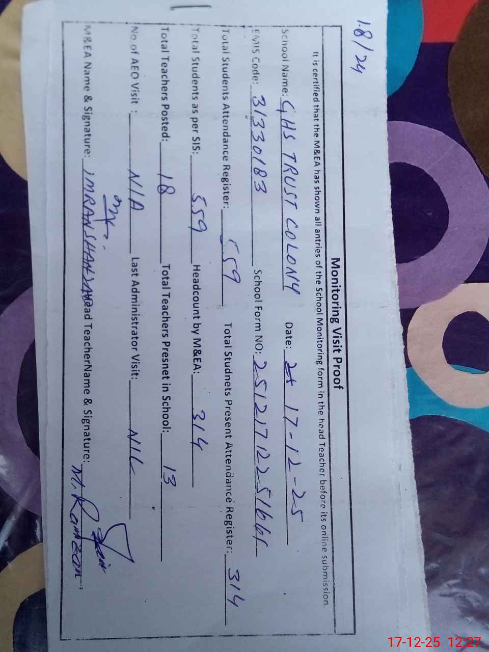 | EMIS Code: 31330183 | Name of School: GHS TRUST COLONY | |||