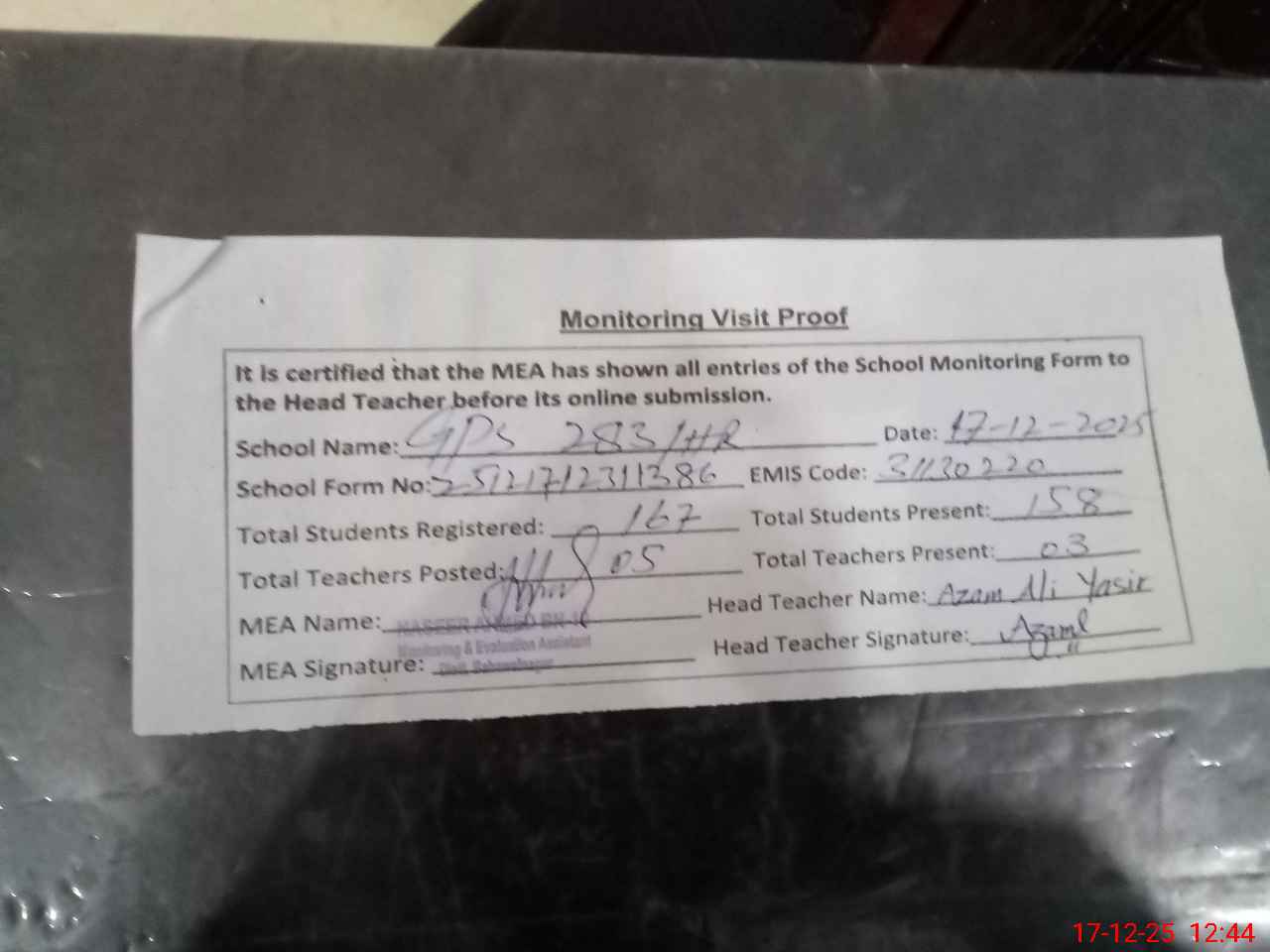 | EMIS Code: 31130220 | Name of School: GPS CHAK 283 HR | |||
