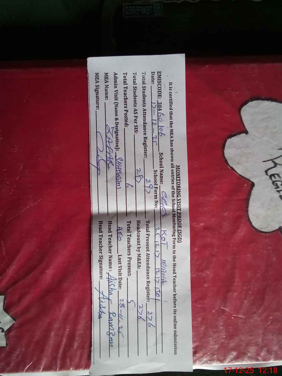 | EMIS Code: 38460106 | Name of School: GGES KOT MIANA | |||