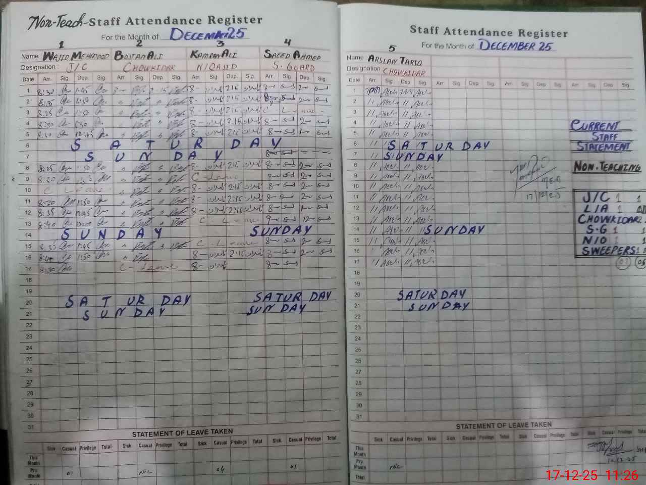 | 00**** | BO**** AL**** | CHOWKIDAR | 0 | 0 | 0 | 0 | 0 | 0 | 0 | 0 | 0 | Casual | |