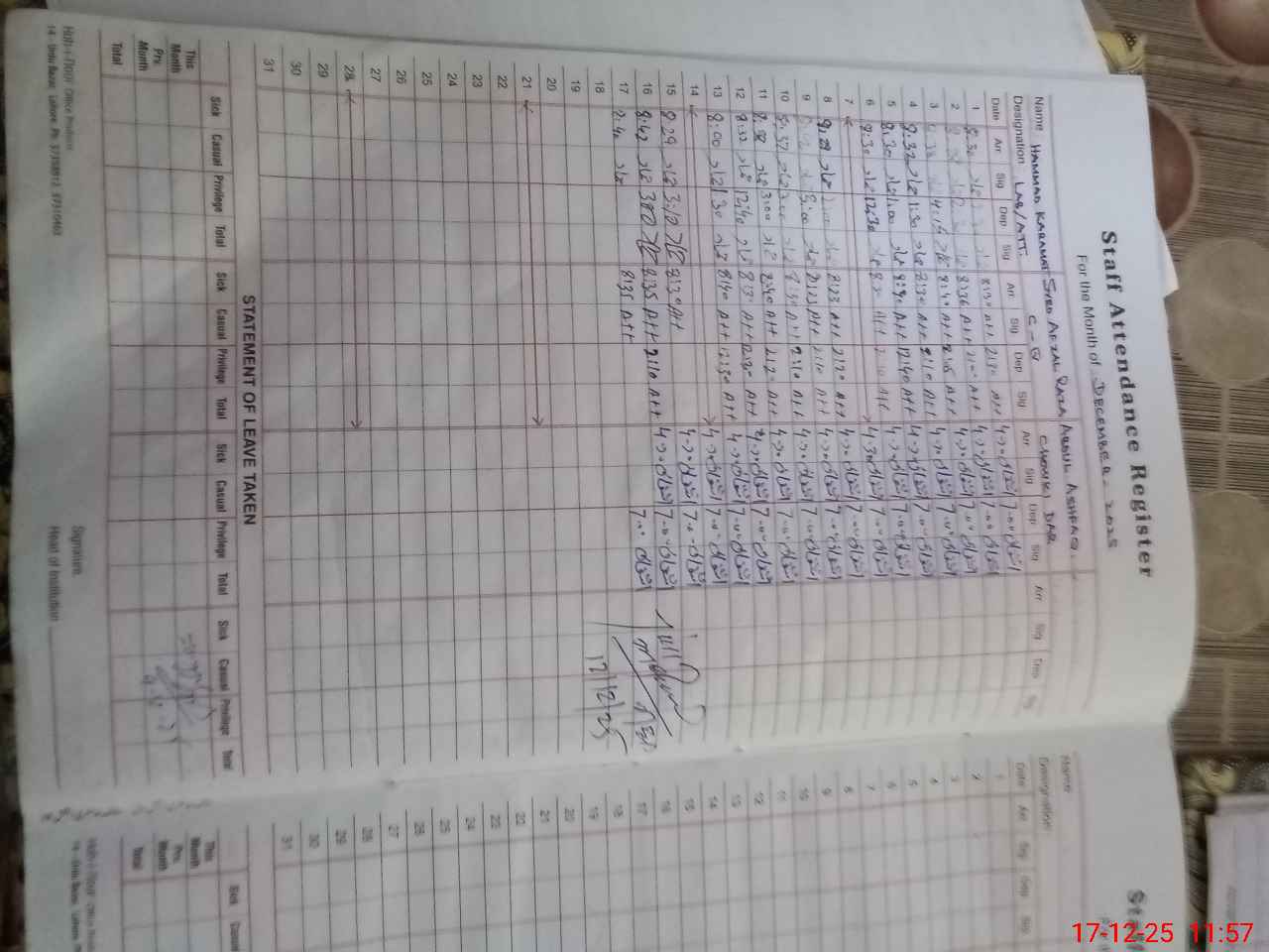 | No. of Students Present - Female | 0 | 0 | 0 | 0 | 0 | 0 | 0 | 0 | 0 | 0 | 0 | 0 | 0 | |||