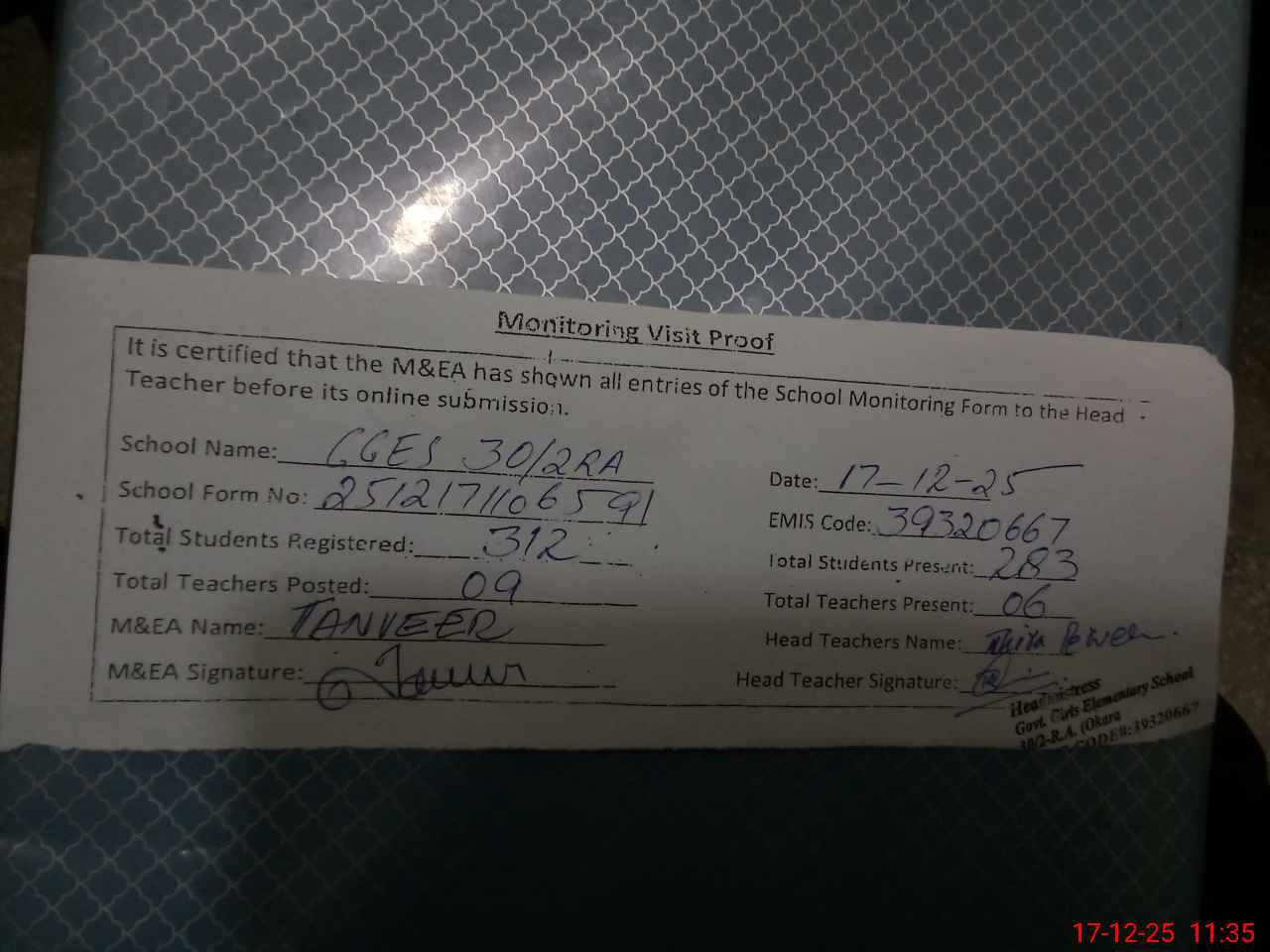 | EMIS Code: 39320667 | Name of School: GGES CHAK NO.30/2-RA | |||