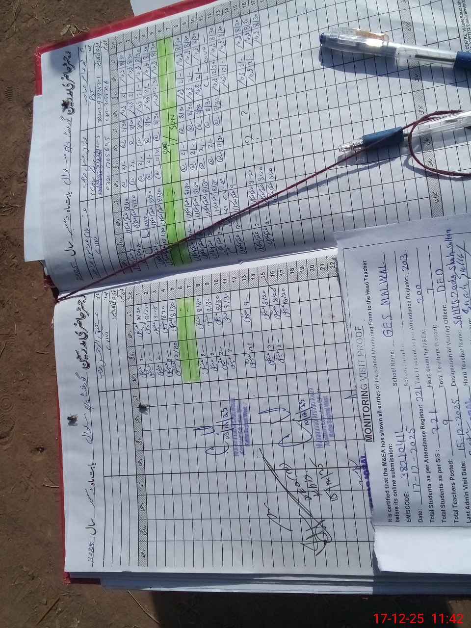 | Remarks (Use Separate Page if Required): last visit by DEO 15 Dec 25 Total on sis 221 Total on register 222 | |||||