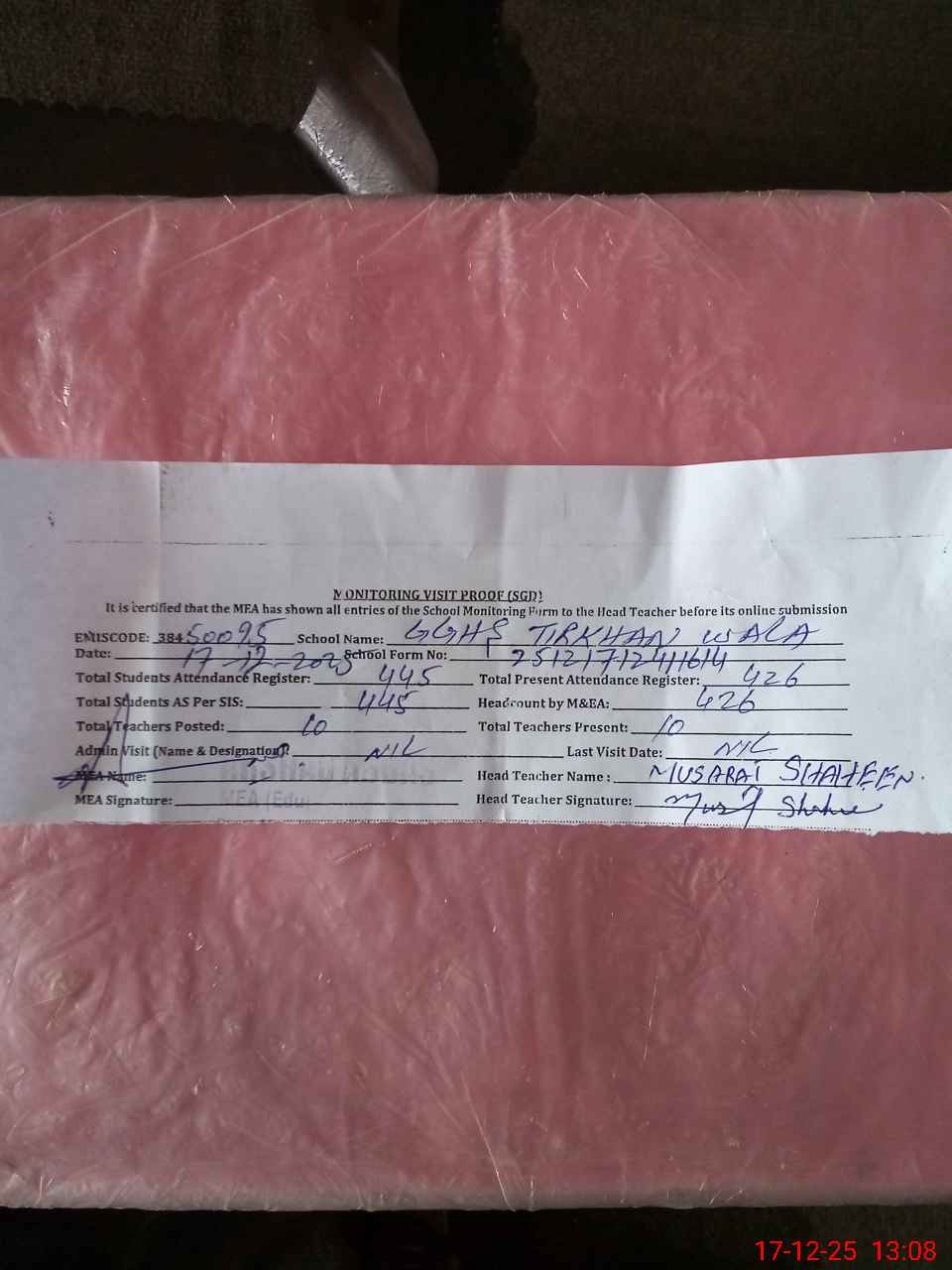 | EMIS Code: 38450095 | Name of School: GGHS TIRKHAN WALA | |||
