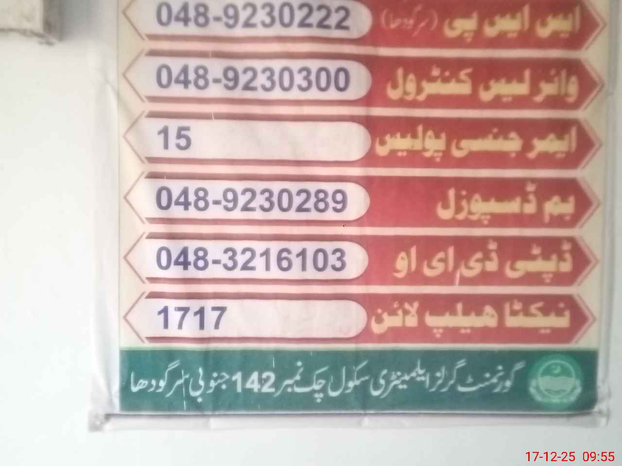 | EMIS Code: 38420163 | Name of School: GGES CHAK NO.142 SB | |||