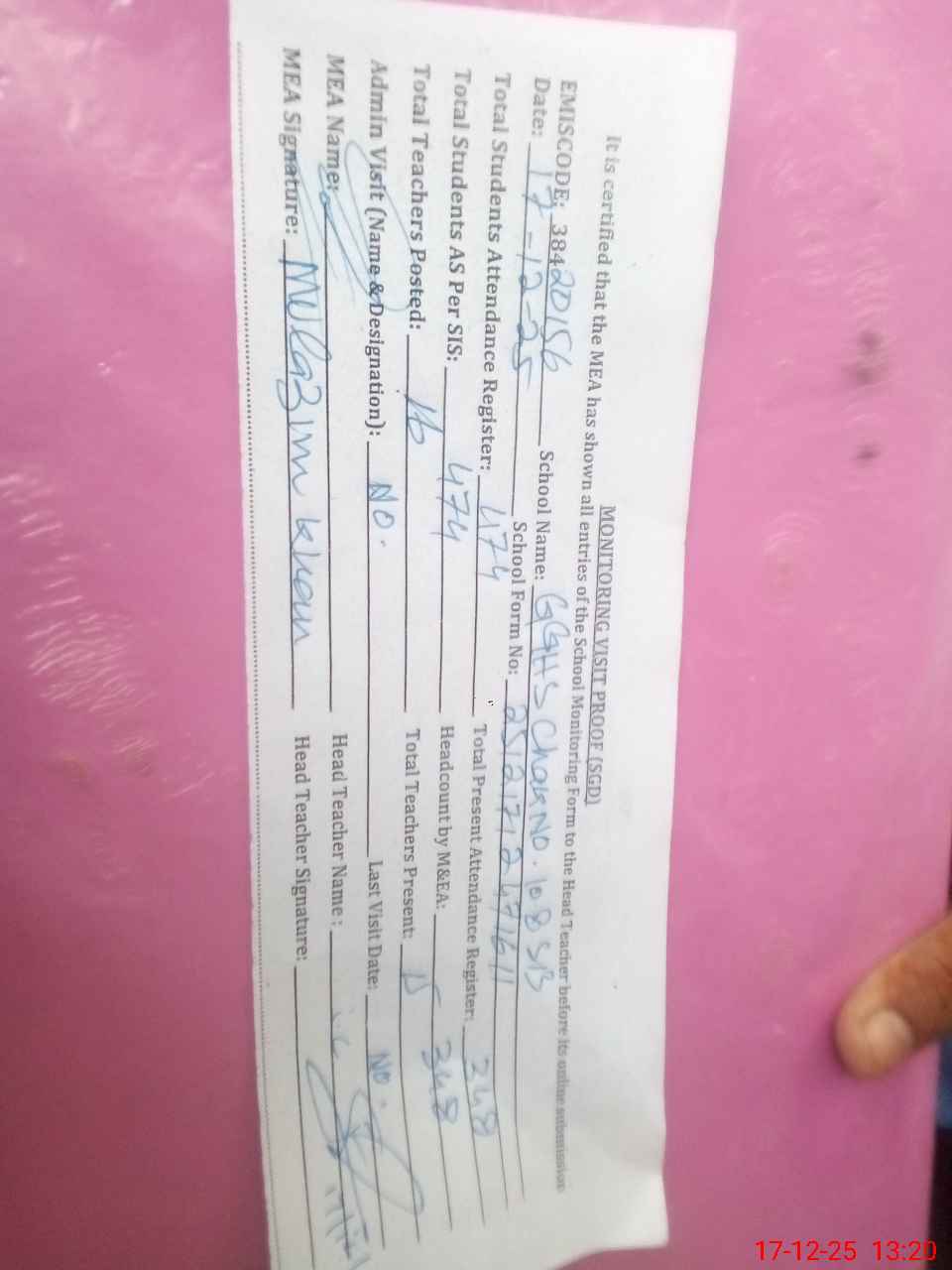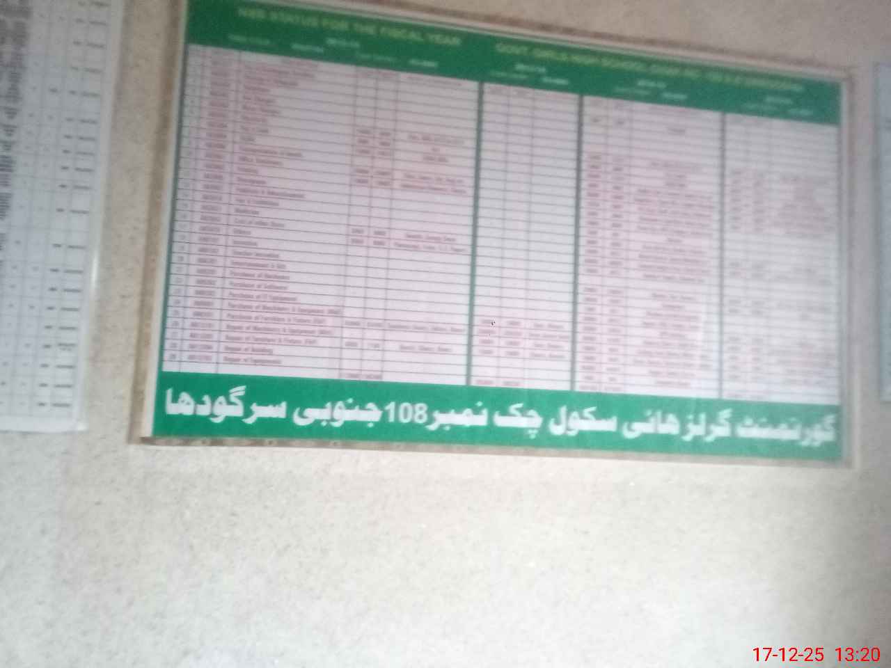 | EMIS Code: 38420156 | Name of School: GGHS CHAK NO.108 SB | |||
