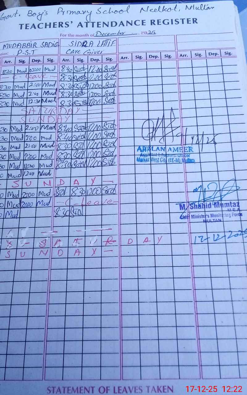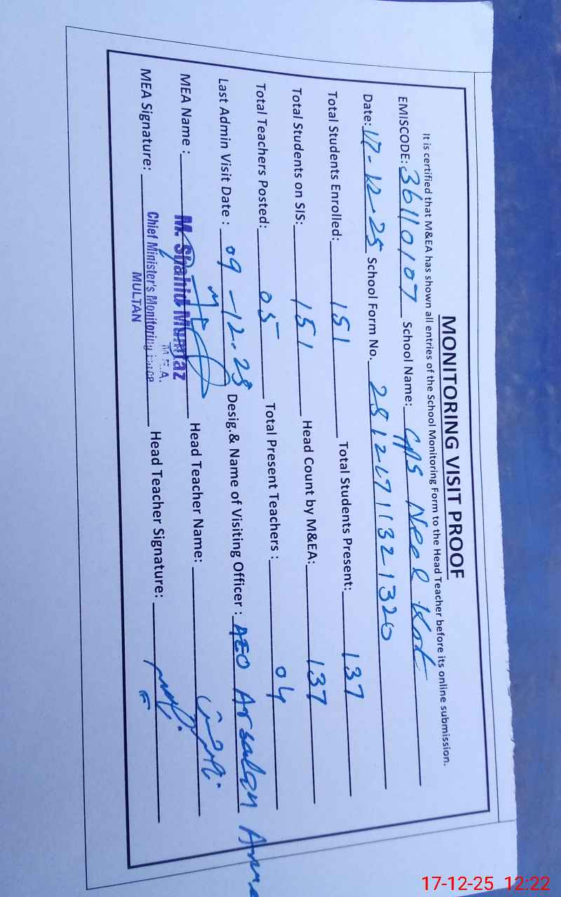 | EMIS Code: 36110107 | Name of School: GPS NEEL KOT NEEL KOT BOSAN ROAD MULTAN | |||