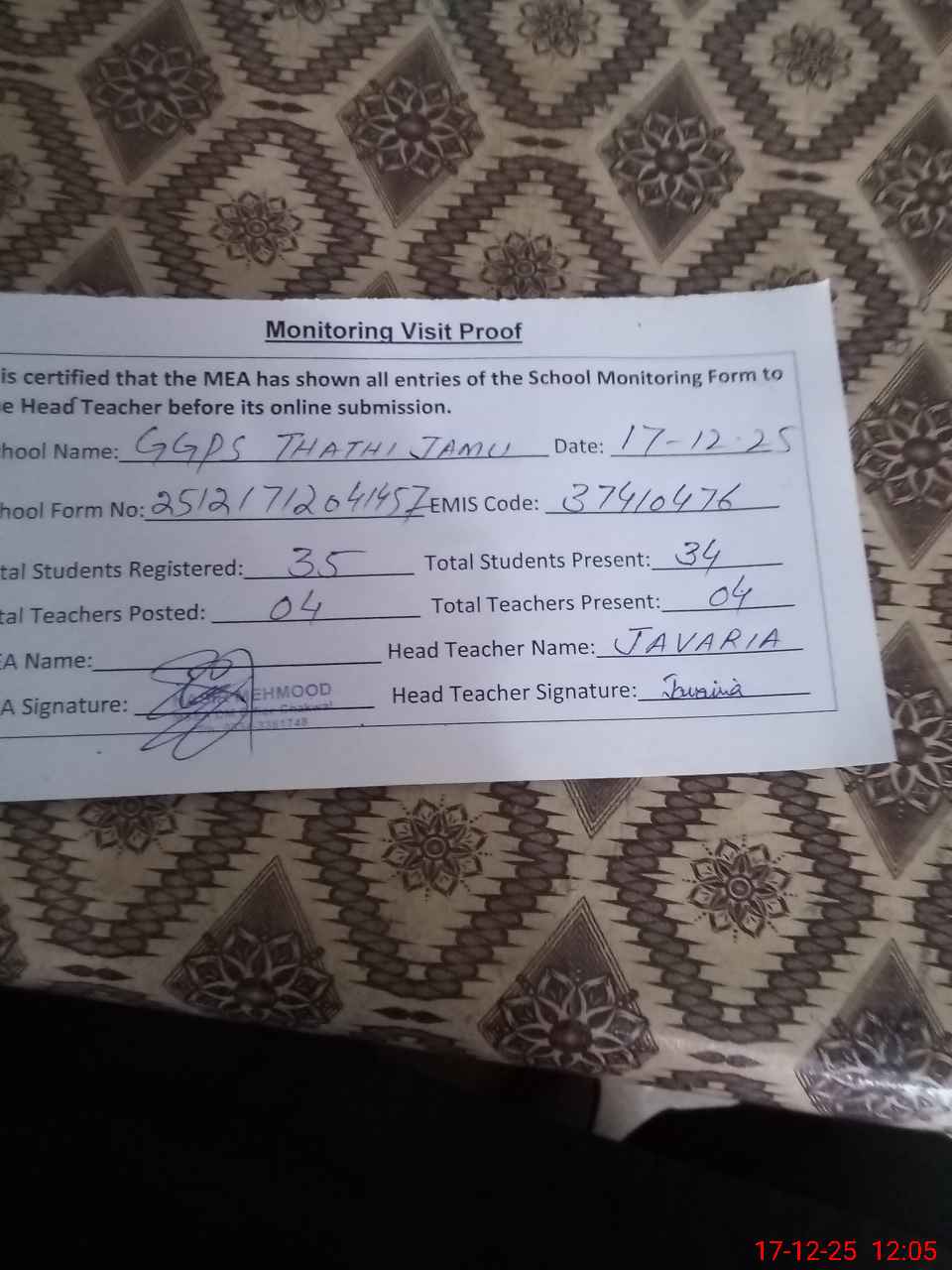 | EMIS Code: 37410476 | Name of School: GGPS THATI JAMOO | |||