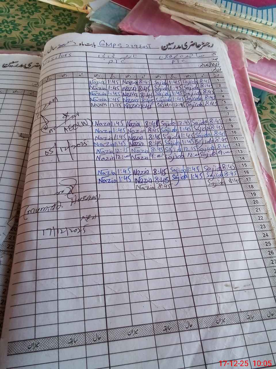 | Remarks (Use Separate Page if Required): 02 classes were sitting in veranda. Barbed wire not available on boundary wall in male Portion. door of one toilet found broken should be repaired. floor of one class room need repairing at Male Portion. FTF of current financial year not available in sis. 18 students found without admission in nursery and one class. no visit of health nutrition since long time. | |||||