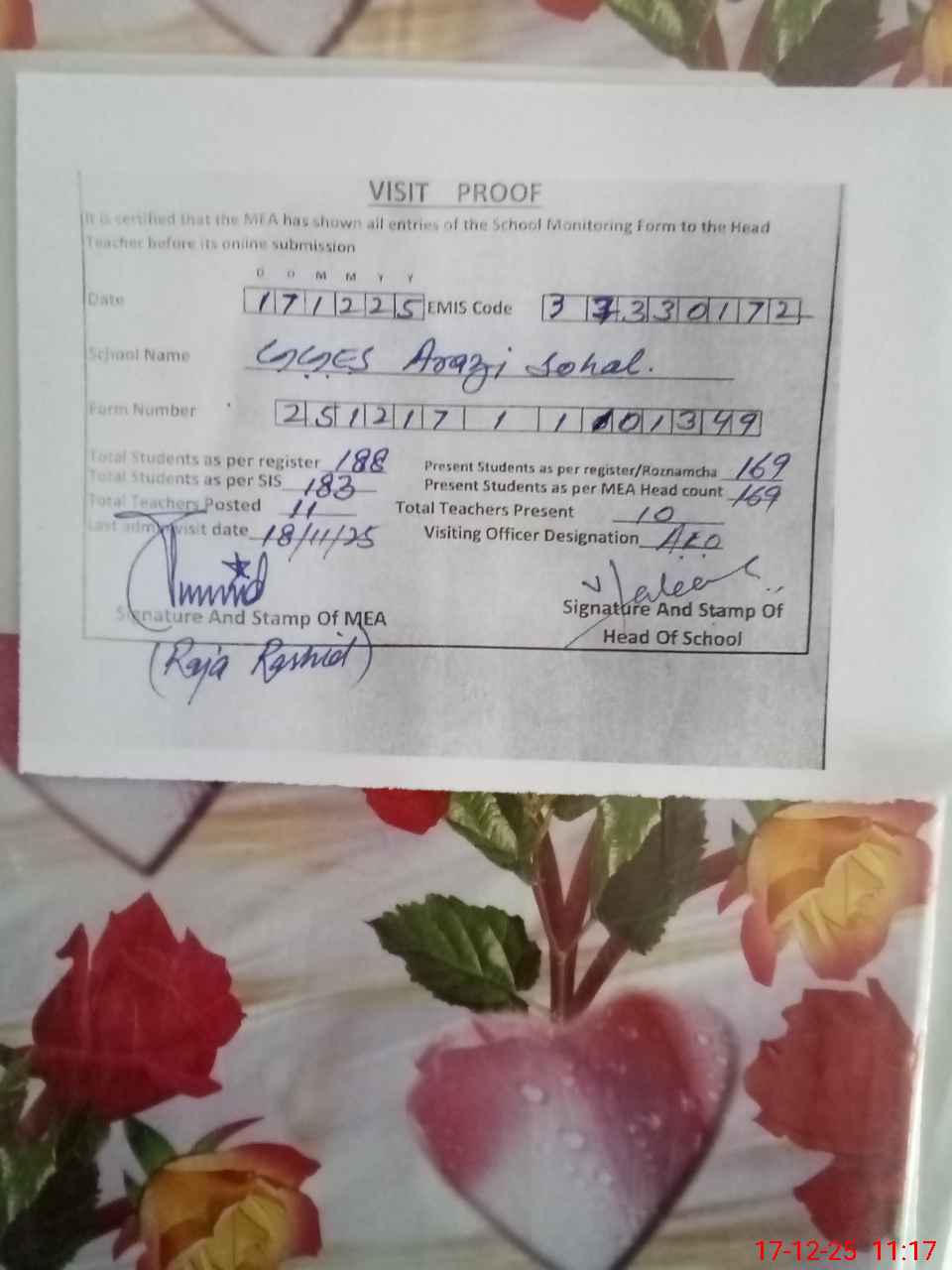 | EMIS Code: 37330172 | Name of School: GGES ARAZI SOHAL | |||