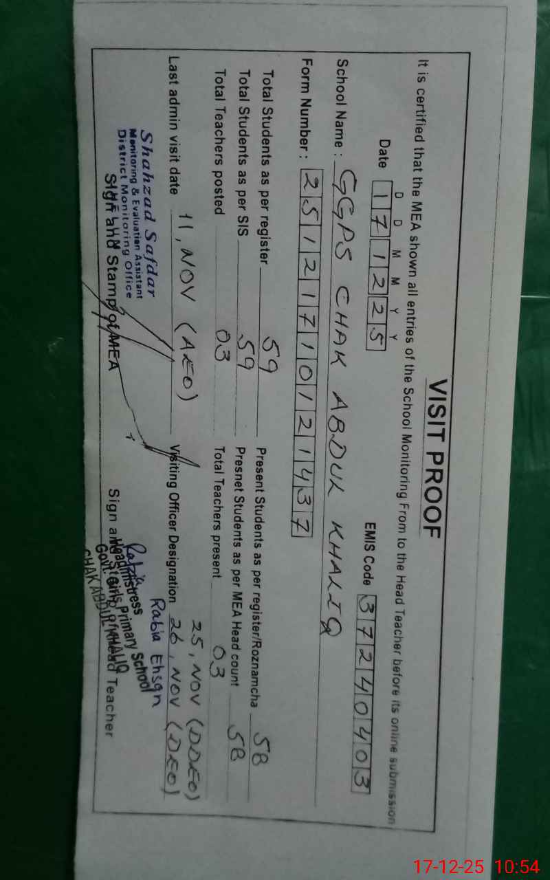 | EMIS Code: 37240403 | Name of School: GGPS CHAK ABDUL KHALIQ | |||
