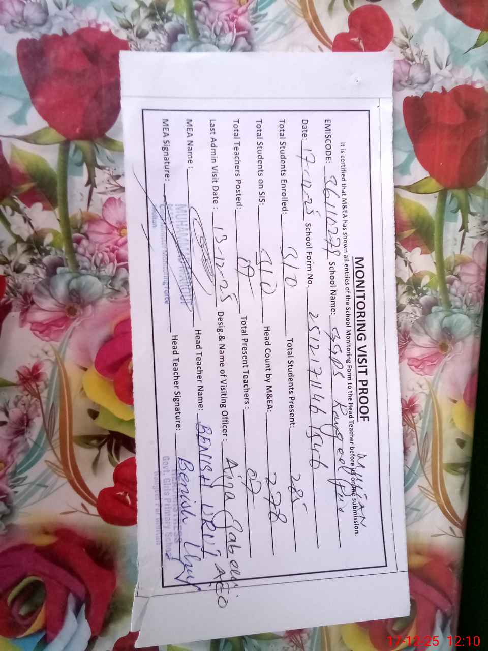 | EMIS Code: 36110279 | Name of School: GGPS RANGEEL PUR MULTAN | |||