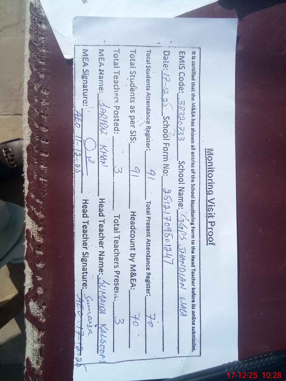 | EMIS Code: 38320733 | Name of School: GGPS JHANDIAN WALA | |||