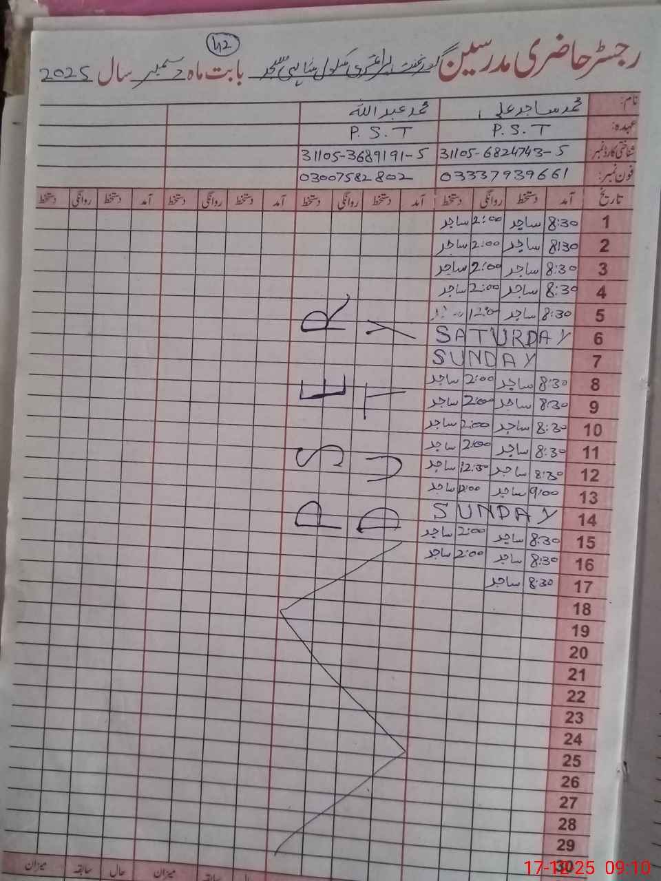 | Name: Mu**** Sa**** Al**** Designation: (School Headmaster's/Headmistress's) PST Phone/Cell Number: 03**** |