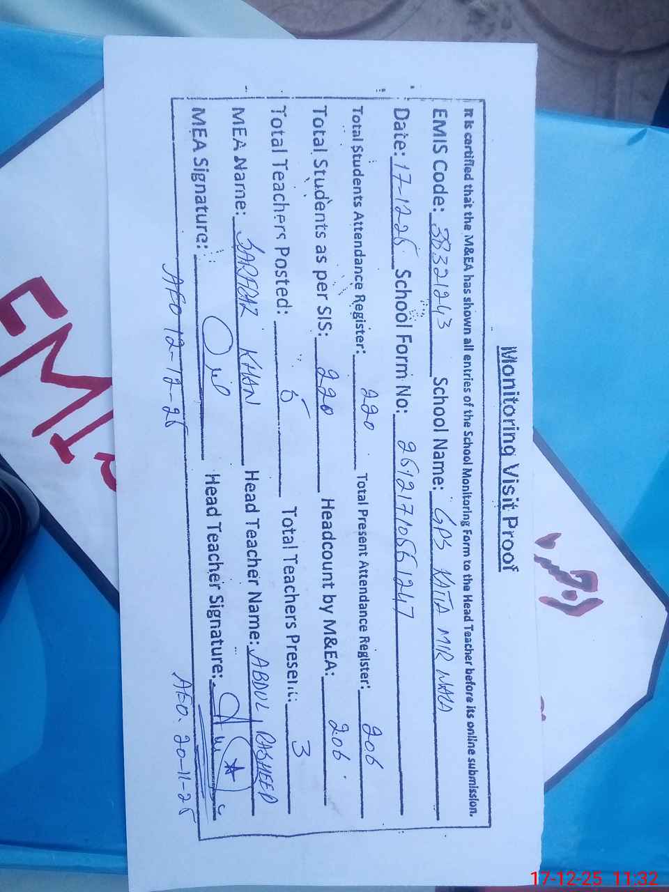 | EMIS Code: 38321243 | Name of School: GPS KATTA MIR WALA | |||