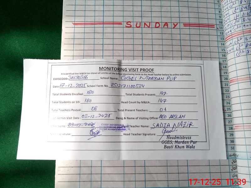 | EMIS Code: 36130366 | Name of School: GGES MARDAN PUR NEAR BASTI KHAN WALA MULTAN | |||