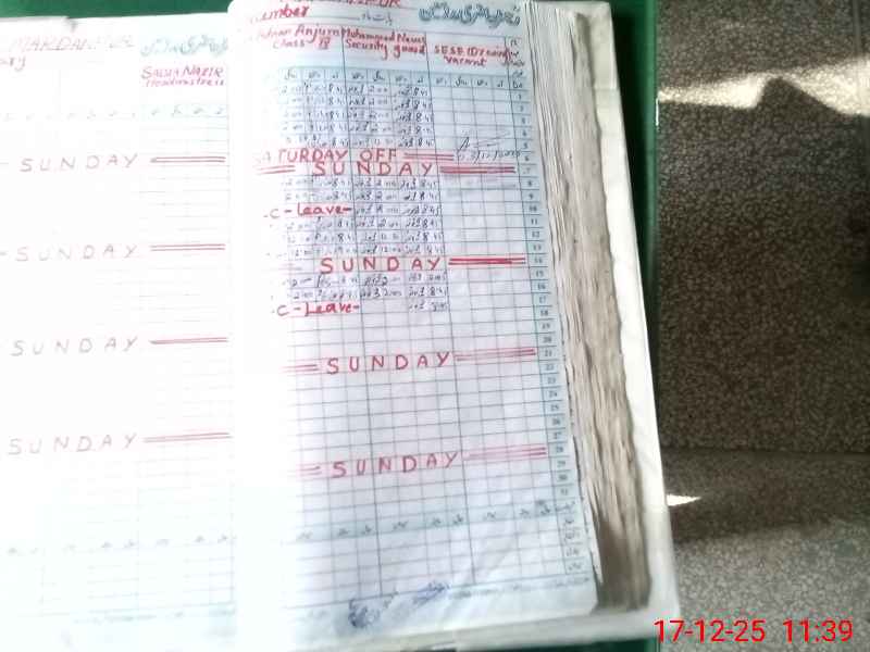 | CNIC | Full Name | Designation | R/C | Absence During Last Calender Month |