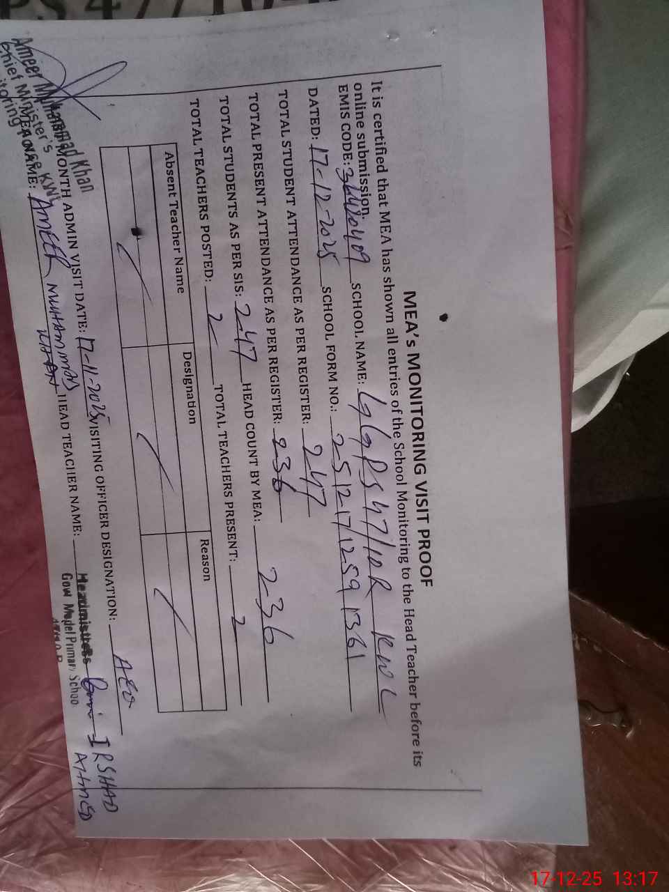| Monitoring Date: 17-12-2025 | Start Time: 17-12-2025 12:36 PM | End Time: 17-12-2025 01:23 PM | Name of MEA: Am**** Mu**** Kh**** | |
