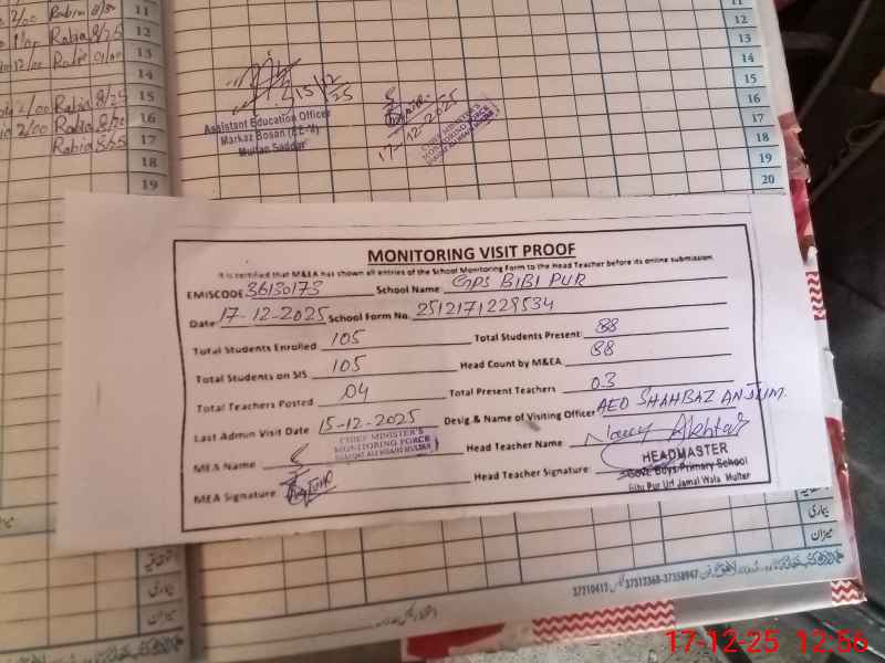 | EMIS Code: 36130173 | Name of School: GPS BIBI PUR MARDAN PUR MULTAN | |||