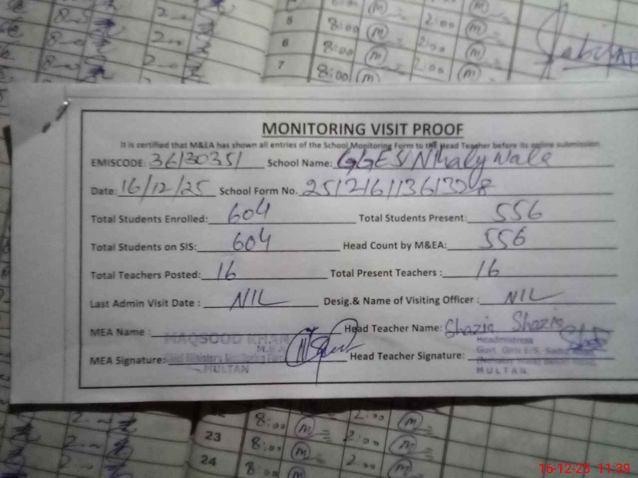 | EMIS Code: 36130351 | Name of School: GGES NIHALY WALA NEAR SADIQ ABAD | |||