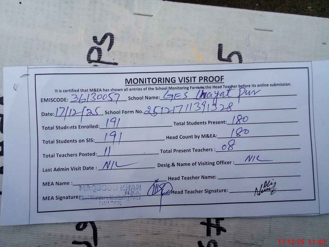 | EMIS Code: 36130057 | Name of School: GES INAYAT PUR MOZA INAYAT PUR MOHOTTAH | |||
