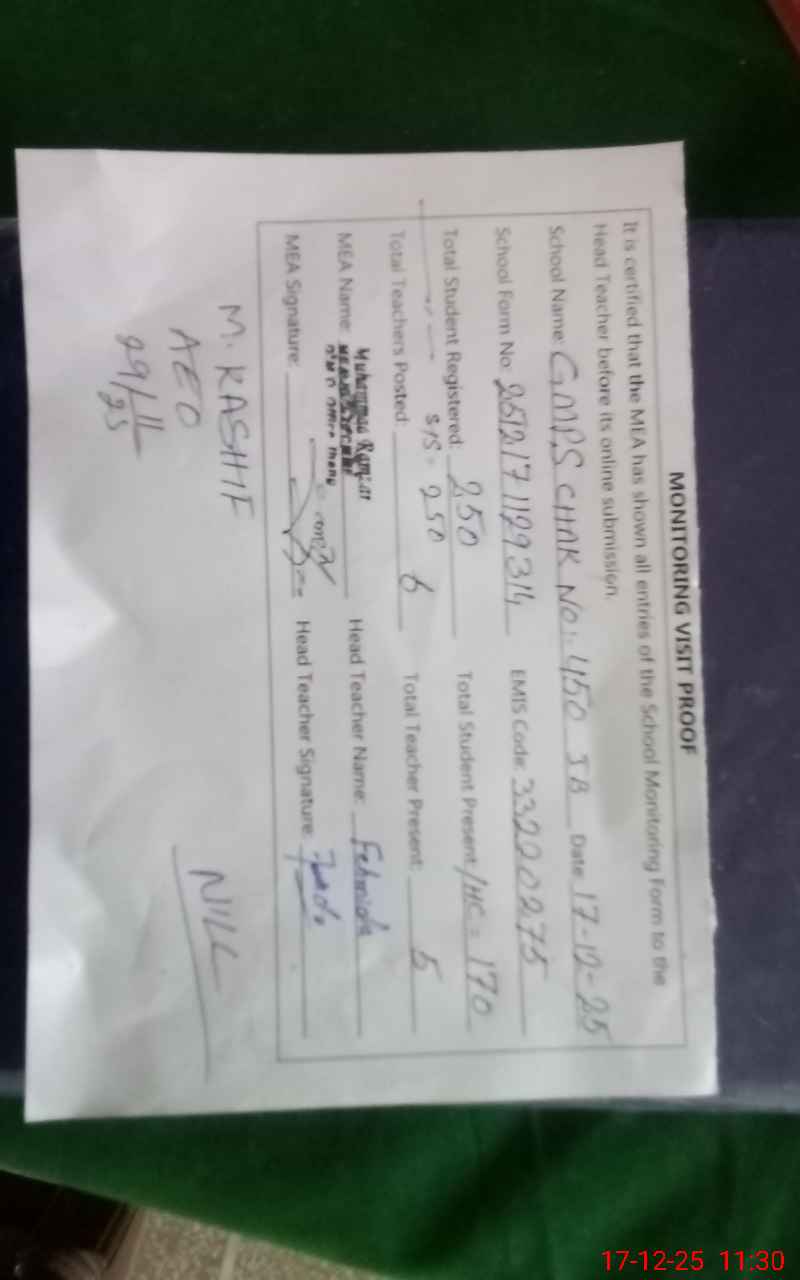 | EMIS Code: 33220275 | Name of School: GMPS CHAK NO. 450 JB | |||