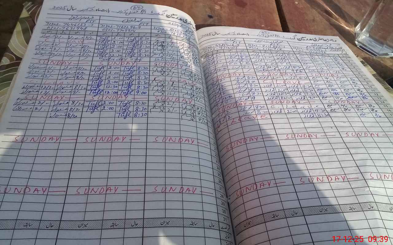 | CNIC | Full Name | Designation | R/C | Absence During Last Calender Month |
