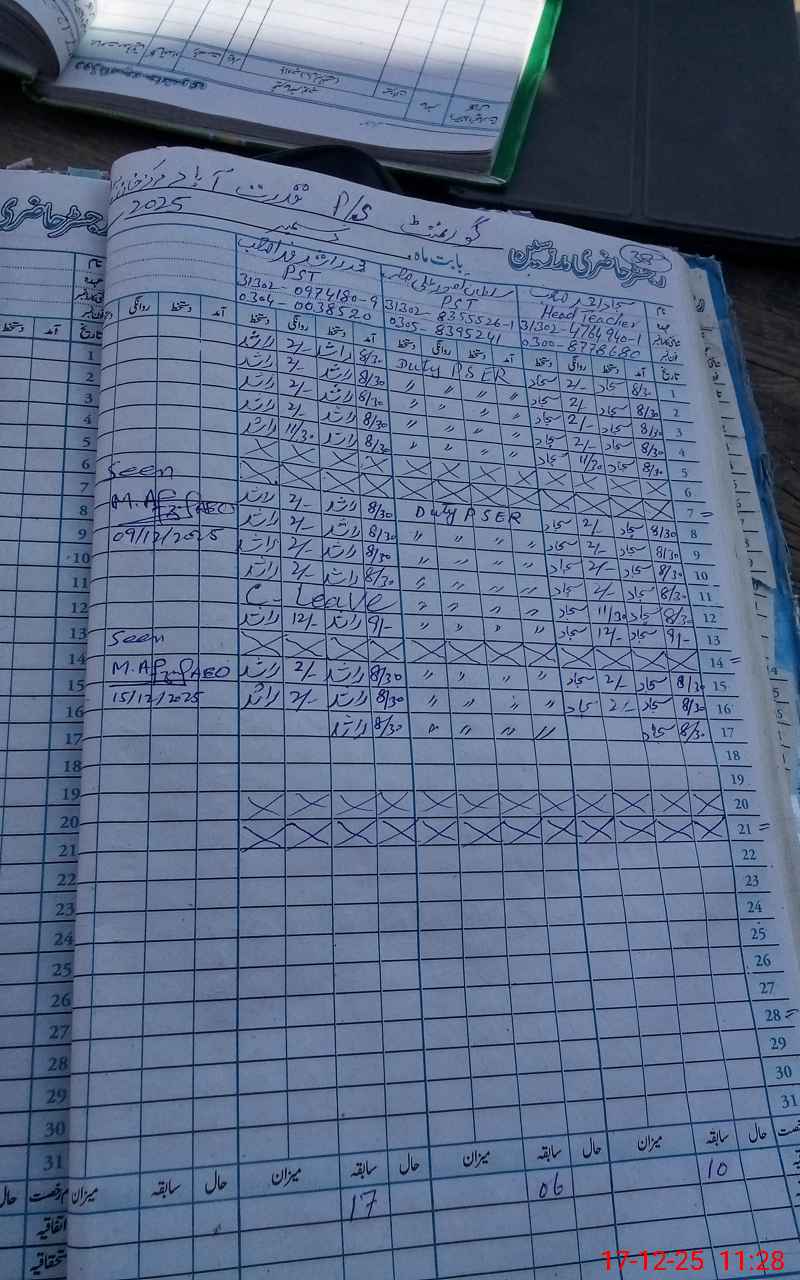 | Name: SA**** AH**** Designation: (School Headmaster's/Headmistress's) PST Phone/Cell Number: 03**** |