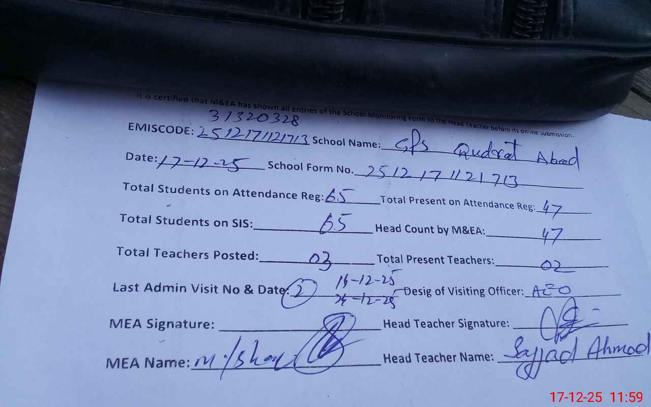 | EMIS Code: 31320328 | Name of School: GPS QUDRAT ABAD | |||