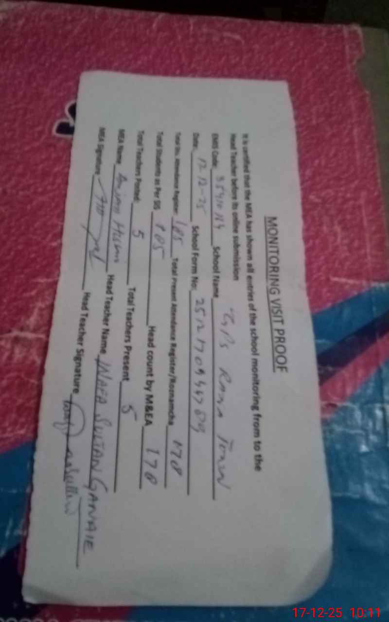 | Attendance Register | Head Teacher | MEA with School | Visit Proof |