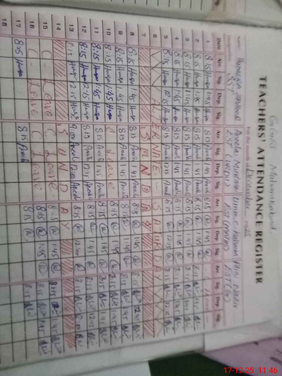 | Monitoring Date: 17-12-2025 | Start Time: 17-12-2025 11:11 AM | End Time: 17-12-2025 11:49 AM | Name of MEA: SH**** AH**** | |