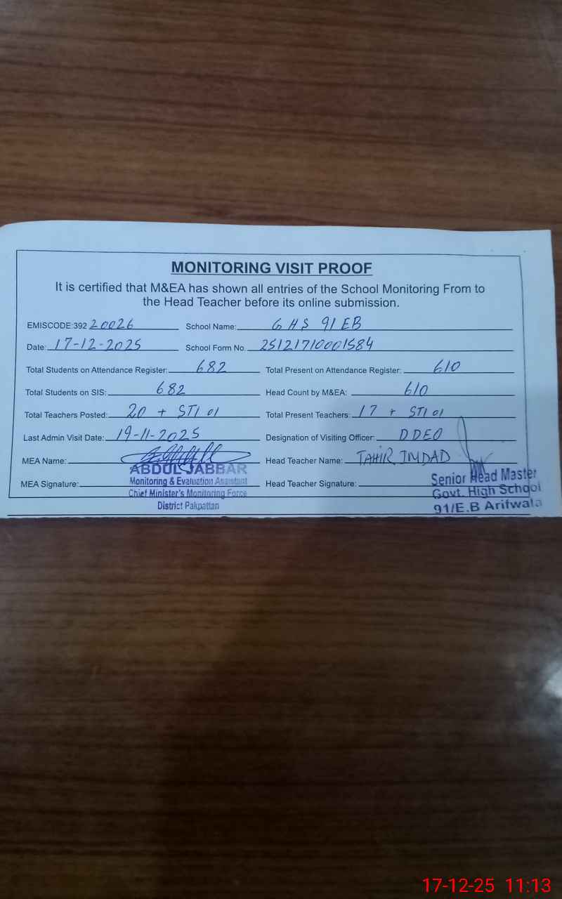 | EMIS Code: 39220026 | Name of School: GHS 91/EB | |||