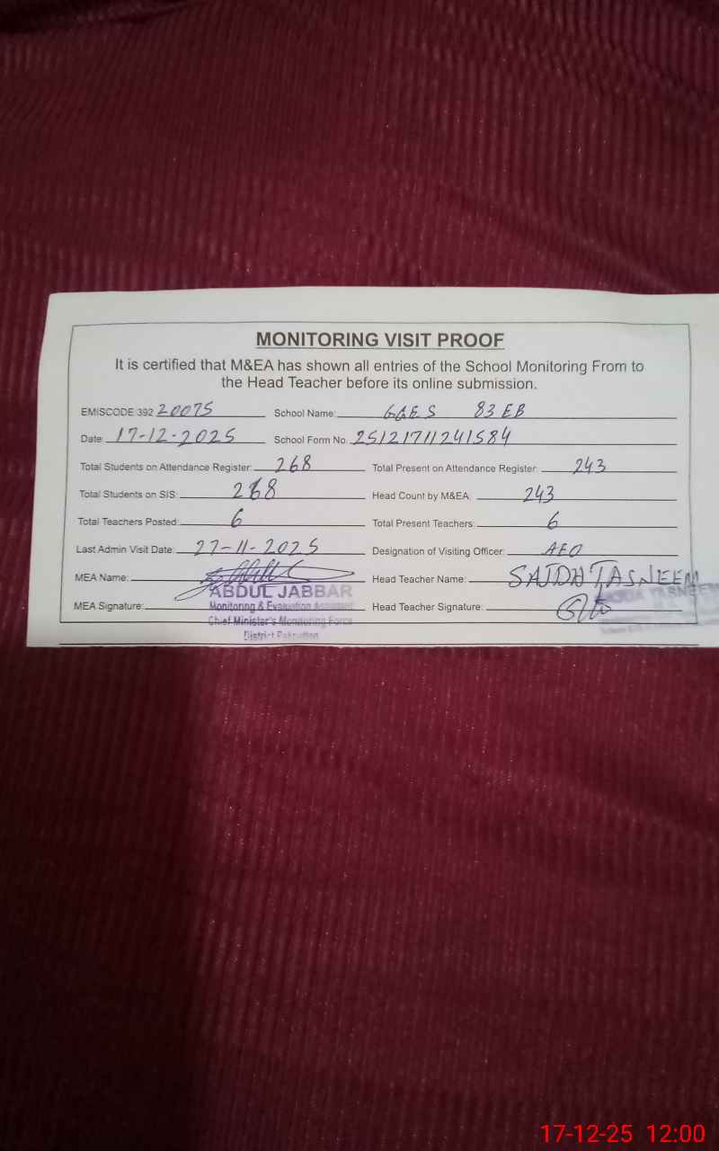 | EMIS Code: 39220075 | Name of School: GGES 83 EB | |||