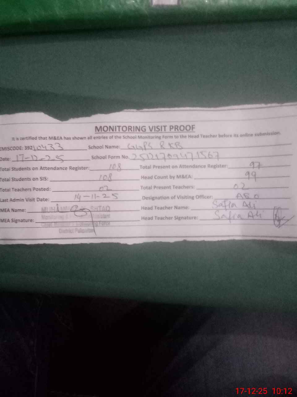 | EMIS Code: 39210433 | Name of School: GGPS CHAK 8 KB | |||