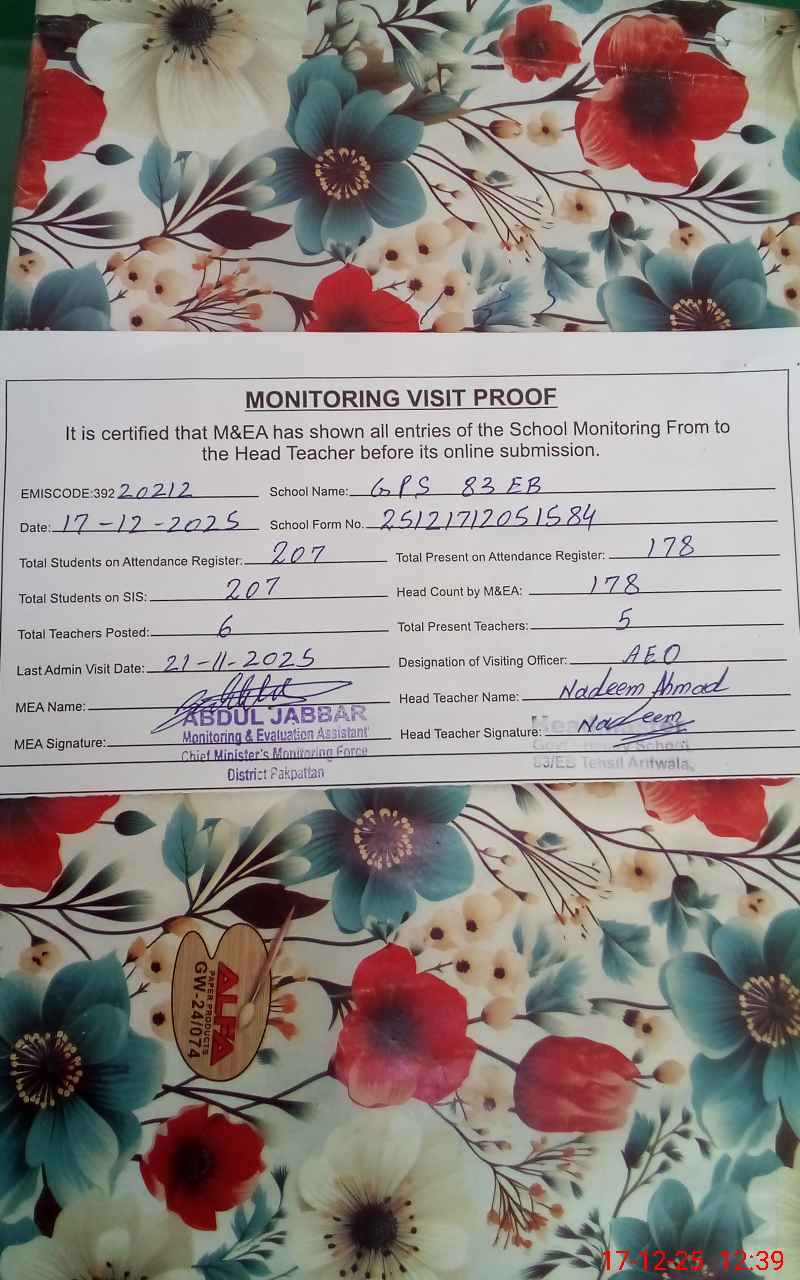 | EMIS Code: 39220212 | Name of School: GPS 83 EB | |||