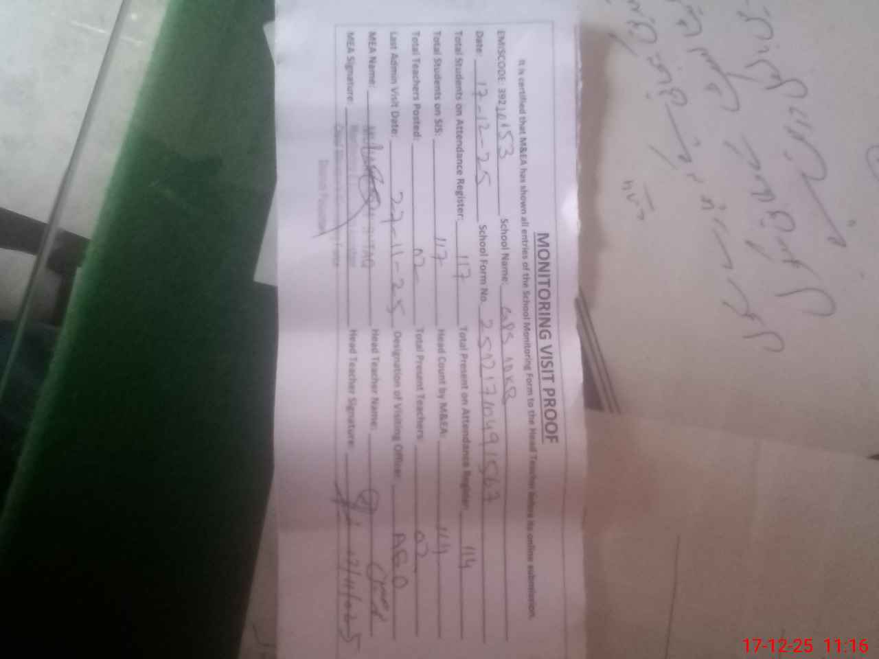 | Certified that this School was Inspected by the Undersigned MEA/DMO Today and the Information Stated Above is as Per Record. | |||||