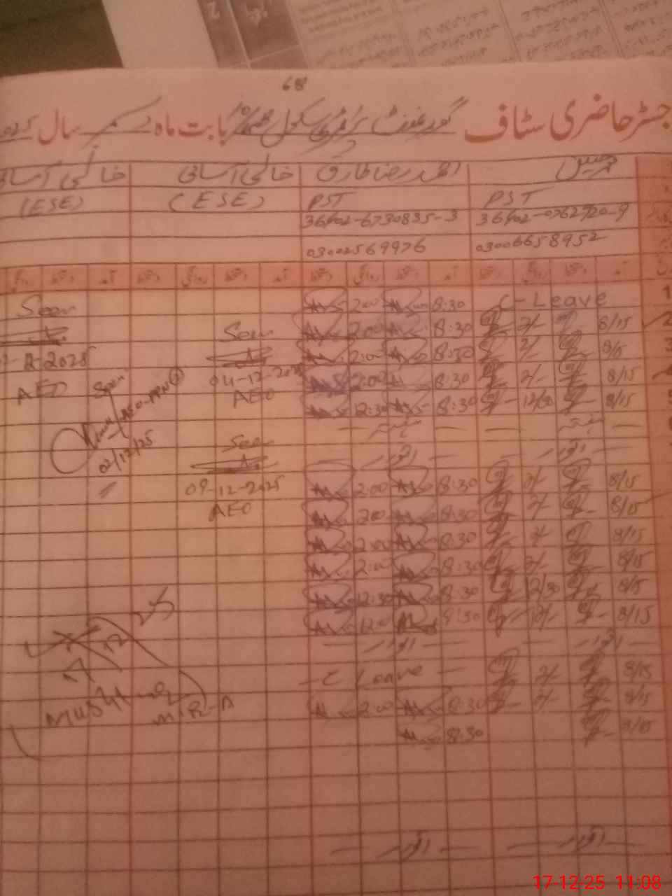 | Name: MU**** HU**** Designation: (School Headmaster's/Headmistress's) PST Phone/Cell Number: 03**** |