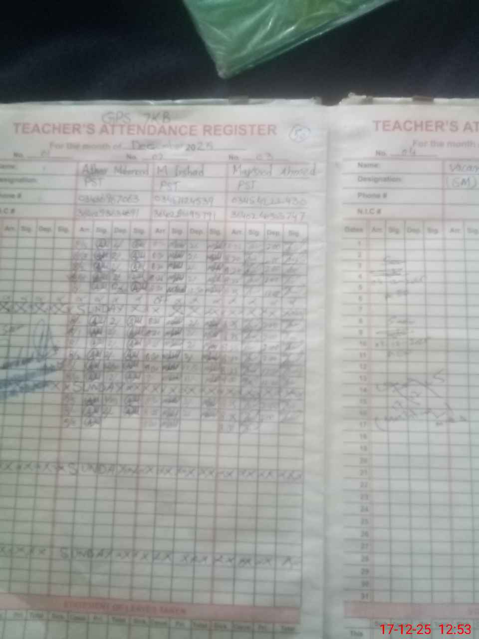 | Name: AT**** MA**** Designation: (School Headmaster's/Headmistress's) PST Phone/Cell Number: 03**** |