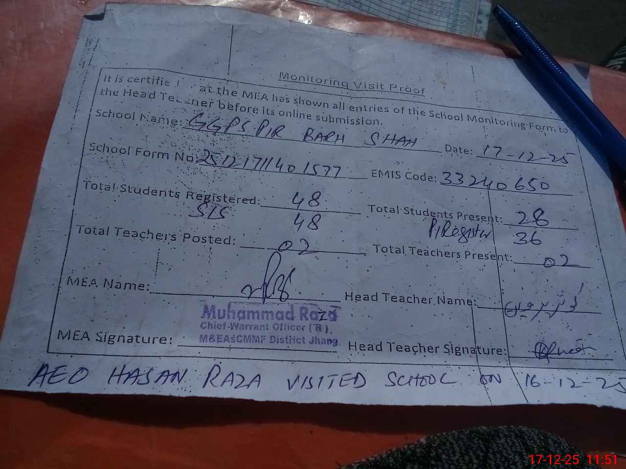 | EMIS Code: 33240650 | Name of School: GGPS PIR BAHR SHAH | |||
