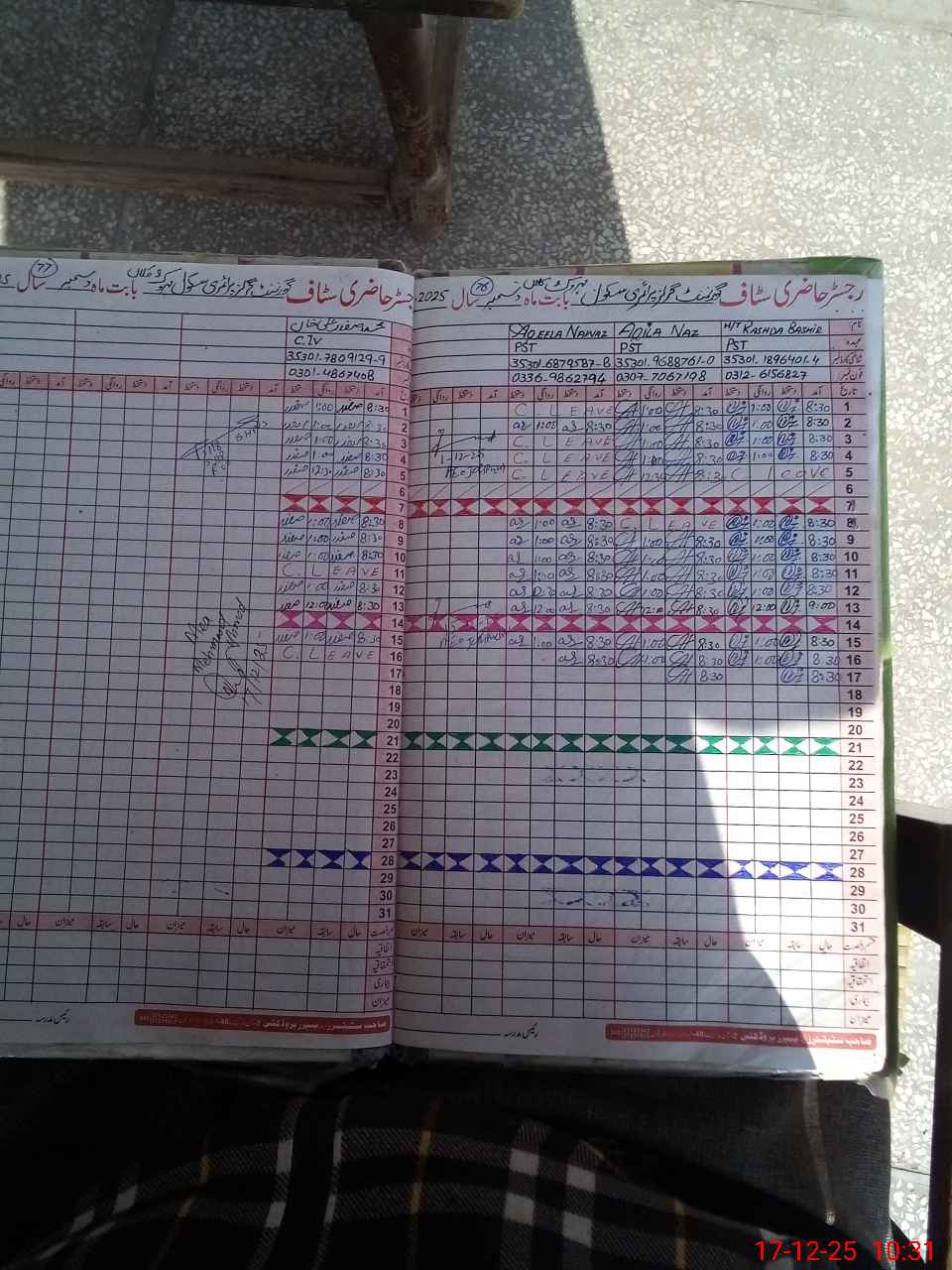 | CNIC | Full Name | Designation | R/C | Absence during last cal. month |