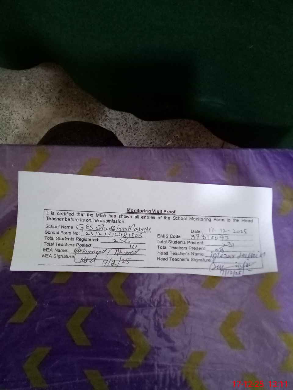 | EMIS Code: 39310093 | Name of School: GES JHUGHIAN MAROOK | |||