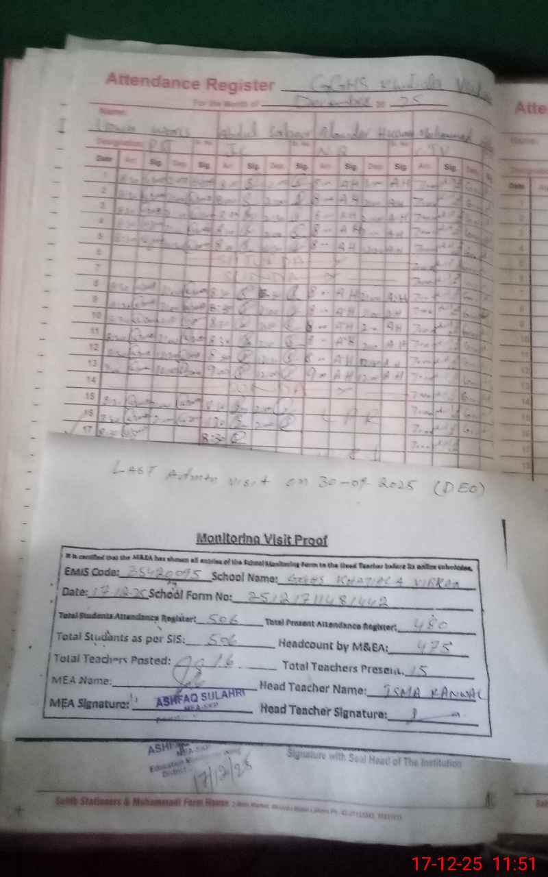 | EMIS Code: 35420095 | Name of School: GGHS KHATIALA VIRKAN | |||