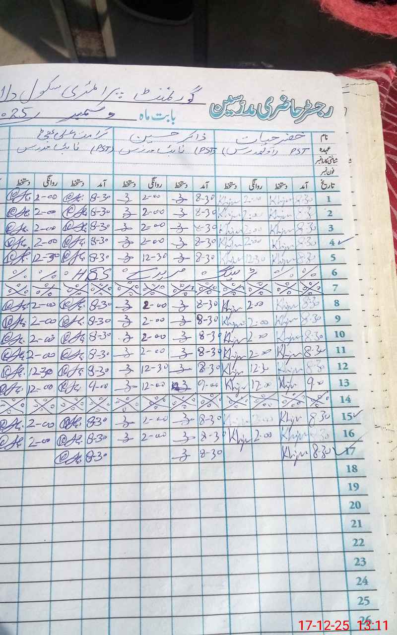 | Name: KH**** HA**** Designation: (School Headmaster's/Headmistress's) PST Phone/Cell Number: 03**** |