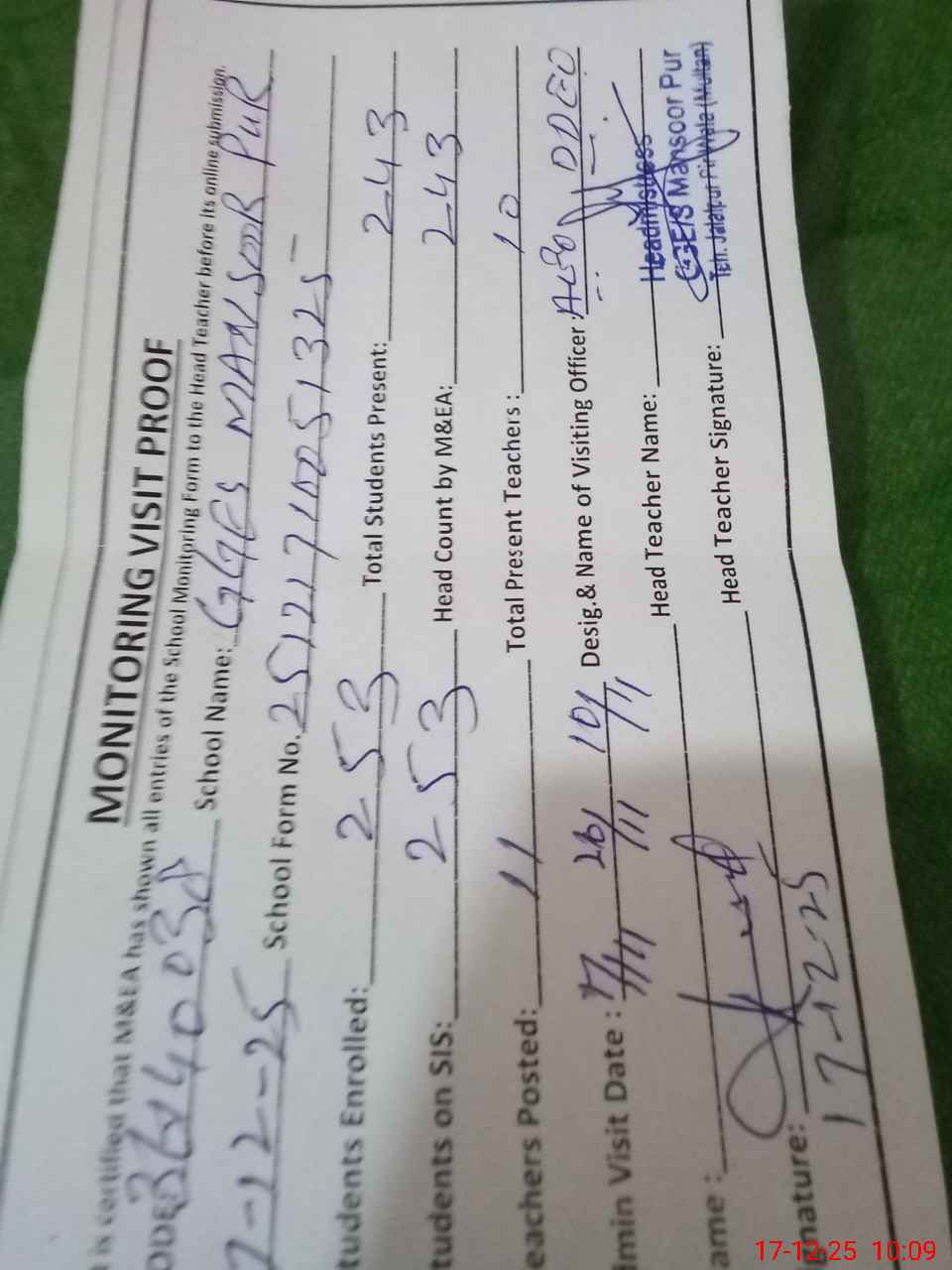 | EMIS Code: 36140038 | Name of School: GGES MANSOOR PUR | |||