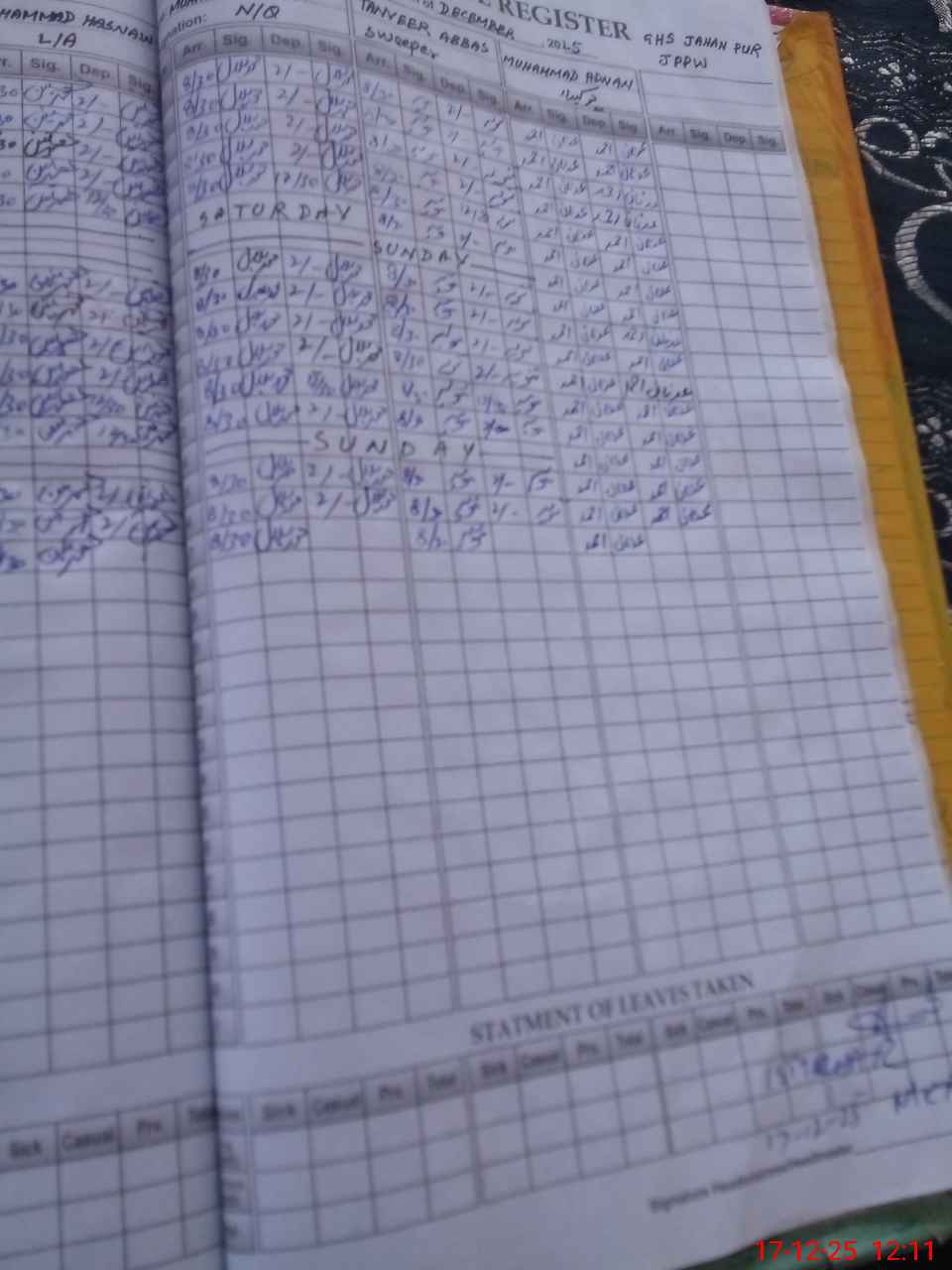 | CNIC | Full Name | Designation | R/C | Absence During Last Calender Month |