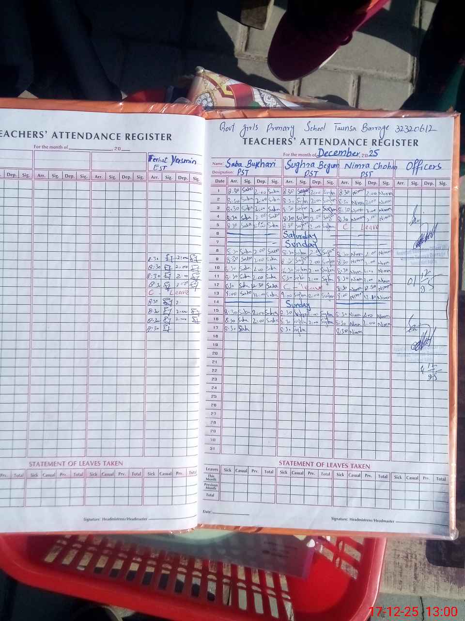 | Remarks (Use Separate Page if Required): 01 Est Miss Farhat Yasmin present in this School with out any authority whereas her postings is GGES IJAZ ABAD | |||||